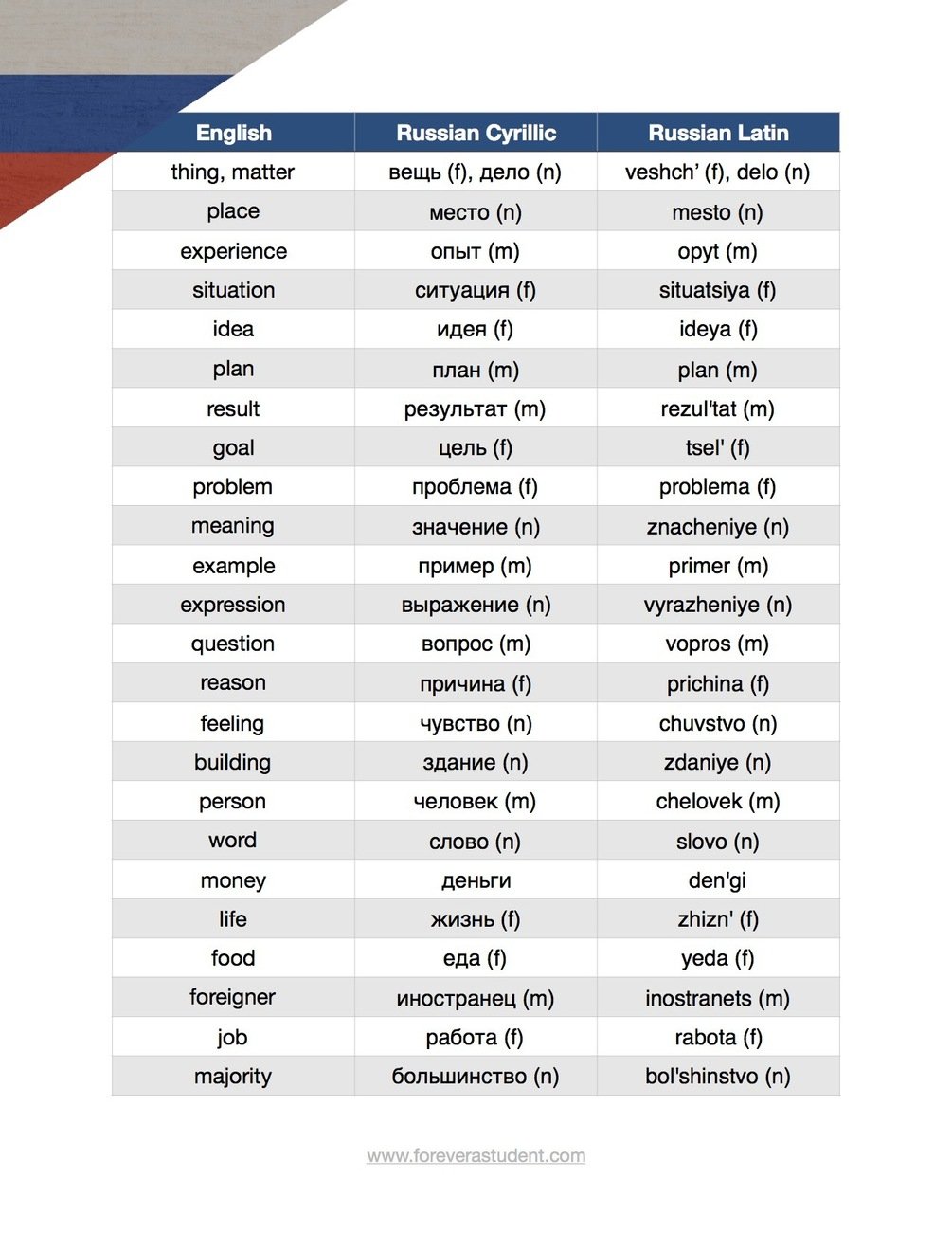 List of the top 150 most frequent, most common and most useful nouns to learn when learning Russian.